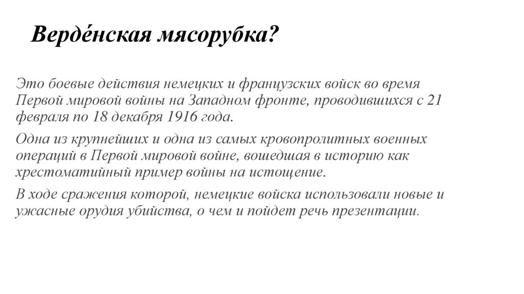 Верде́нская мясорубка?Это боевые действия немецких и французских войск во время