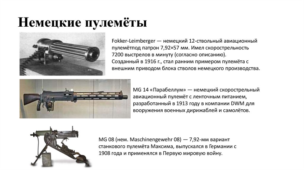 Немецкие пулемётыFokker-Leimberger — немецкий 12-ствольный авиационный