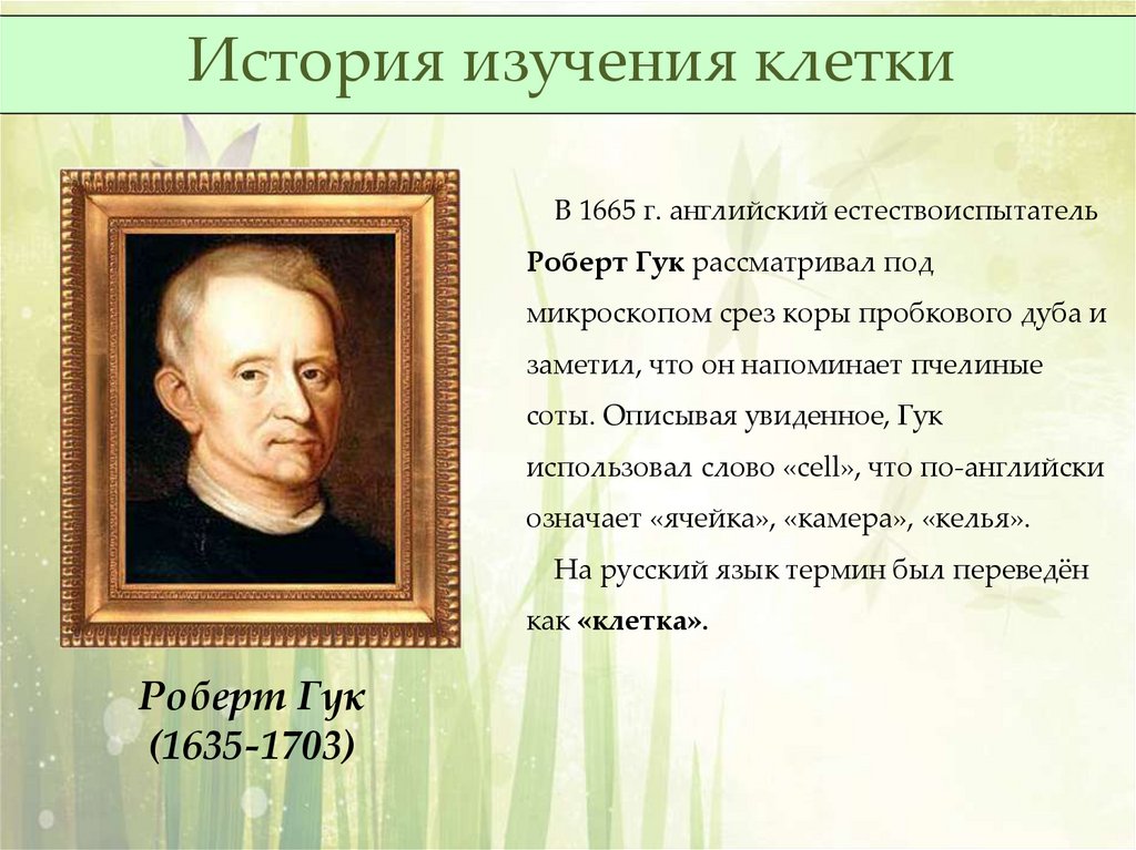 История изучения клеткиВ 1665 г. английский естествоиспытатель