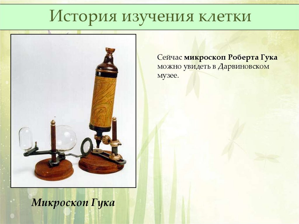 История изучения клеткиСейчас микроскоп Роберта Гука