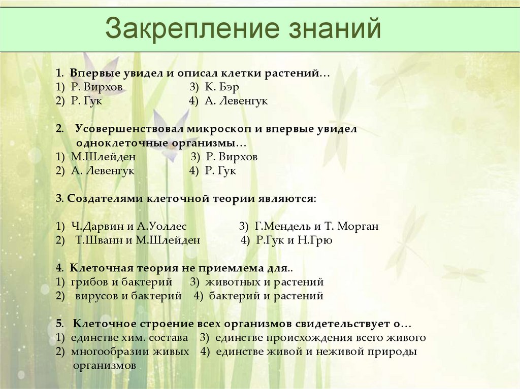 Закрепление знаний1. Впервые увидел и описал клетки растений…