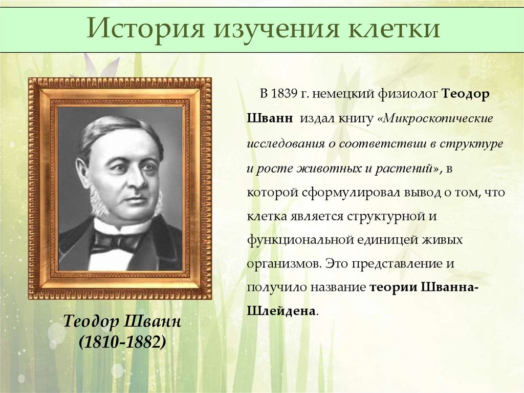 История изучения клеткиВ 1839 г. немецкий физиолог Теодор