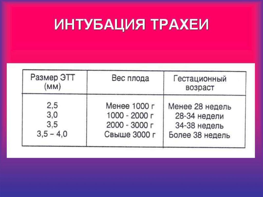 сердца, стояния интубационной трубки,
