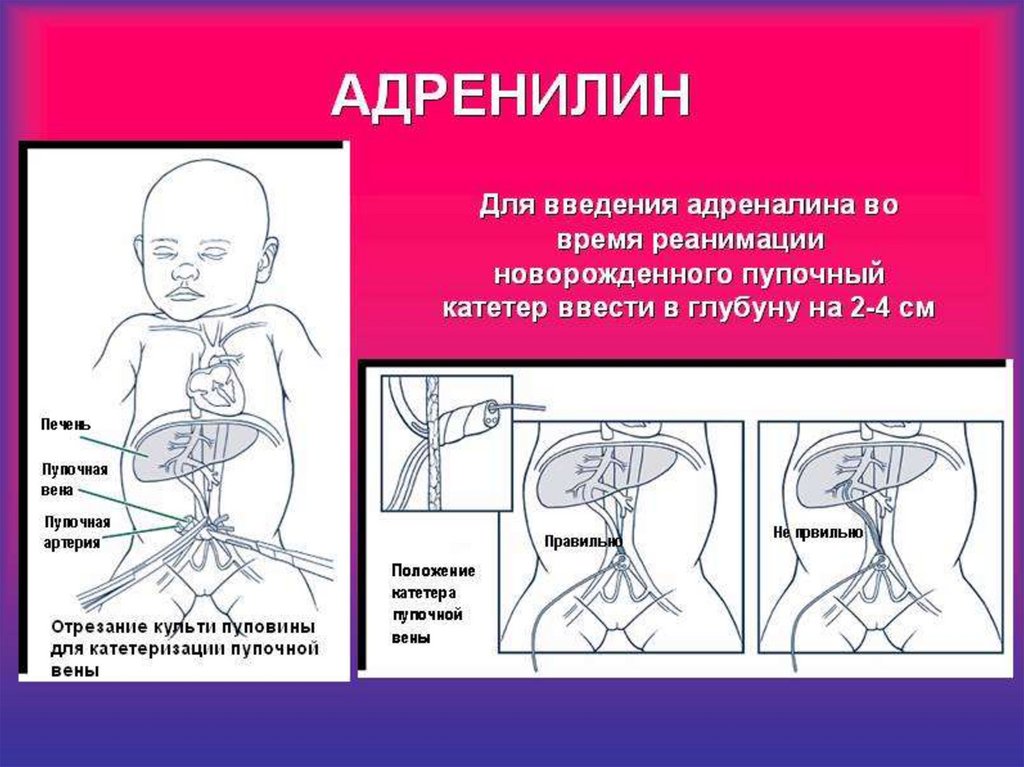 Способ введения - в вену пуповины (не быстрее, чем