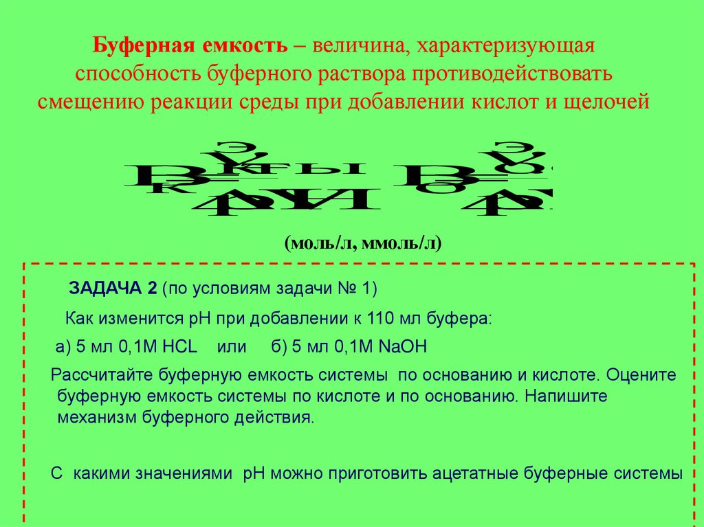 11. Буферная емкость – величина, характеризующая способность буферного раствора противодействовать смещению реакции среды при