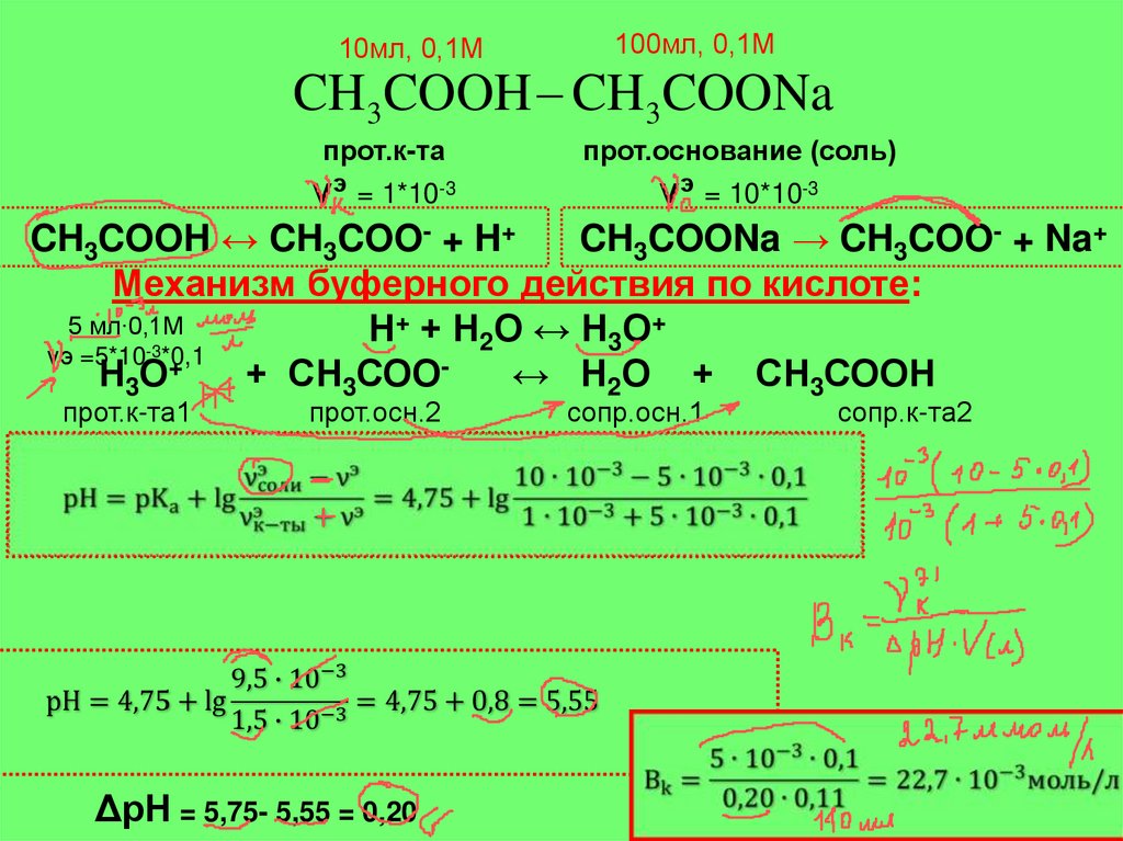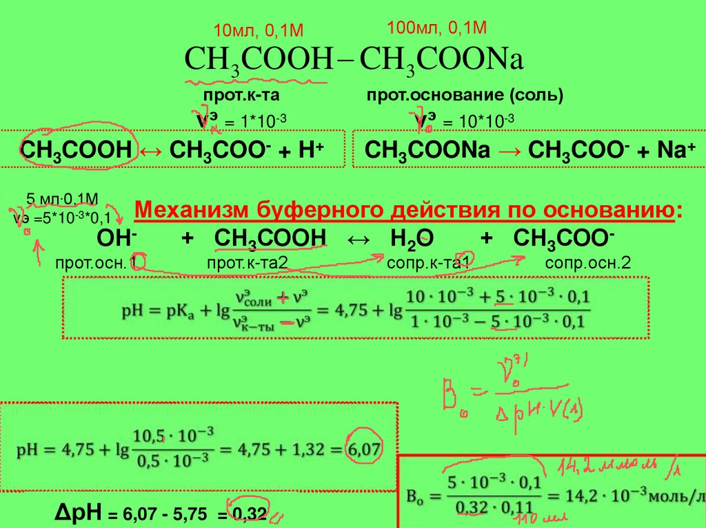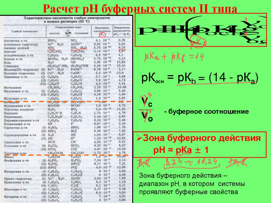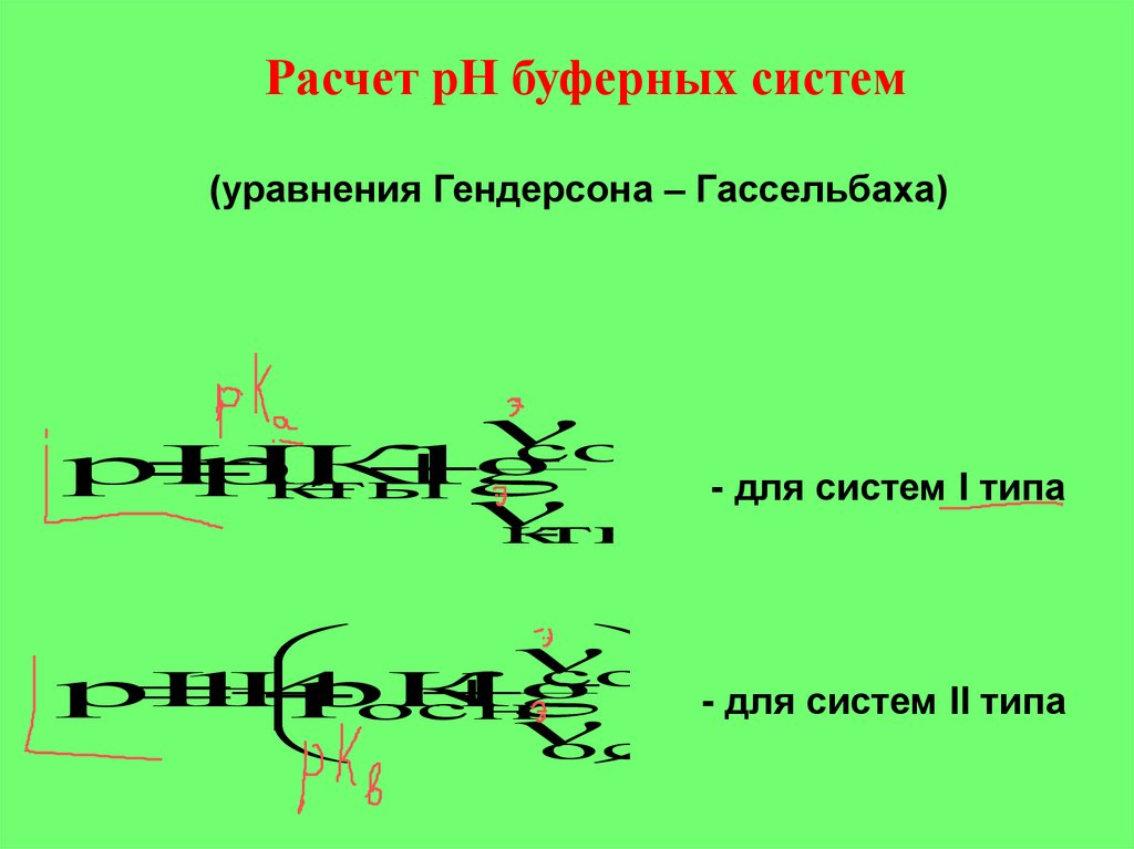 Расчет рН буферных систем(уравнения Гендерсона – Гассельбаха)