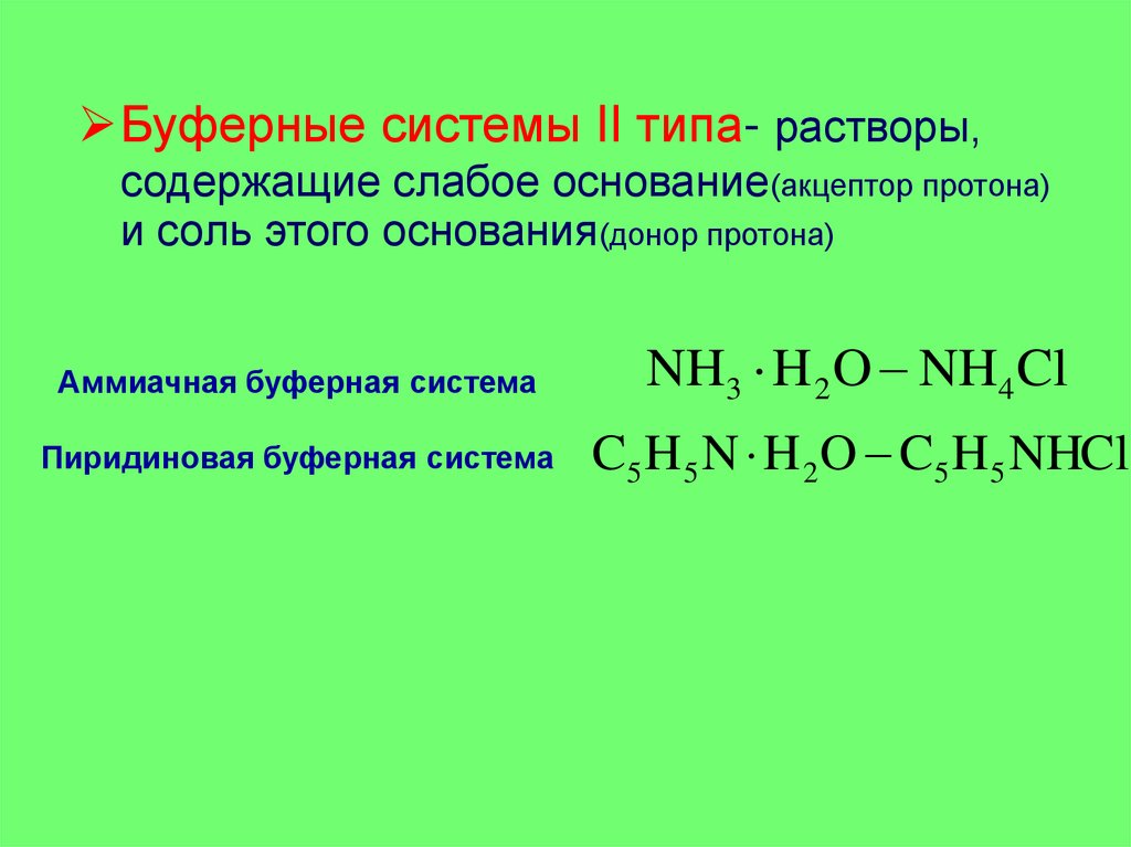 21. Аммиачная буферная система: состоит из аммиака и хлорида аммония прот основание прот. кислота(соль)