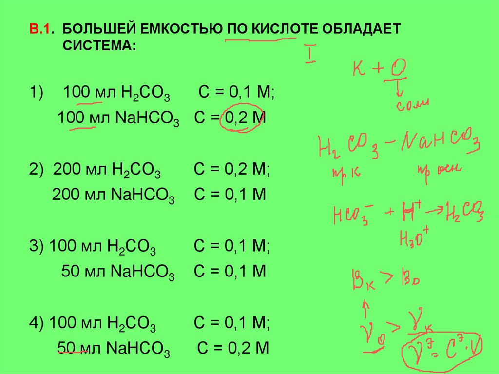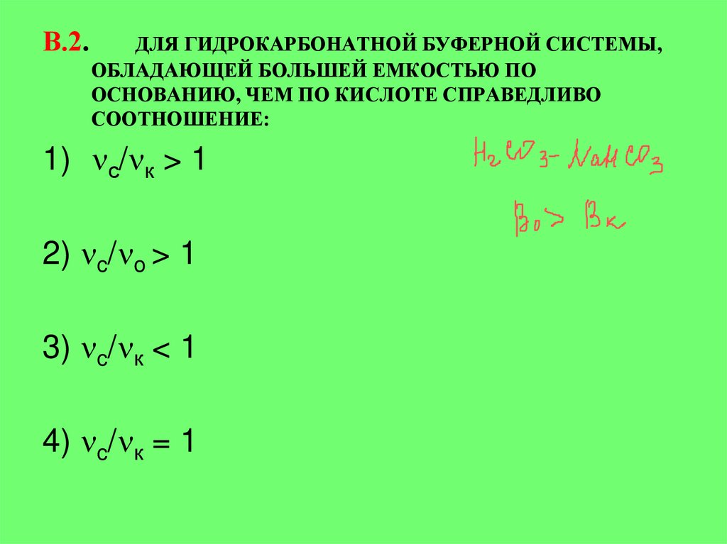 В.2.ДЛЯ ГИДРОКАРБОНАТНОЙ БУФЕРНОЙ СИСТЕМЫ,