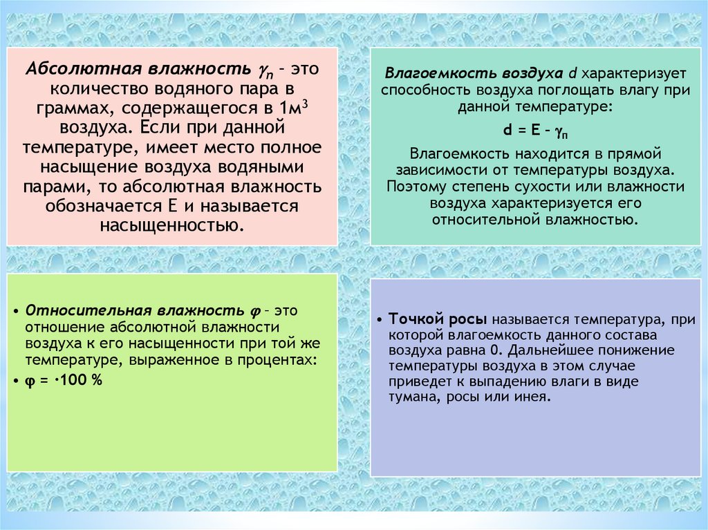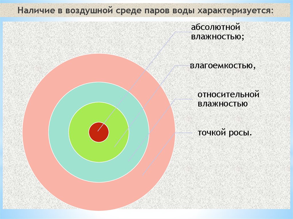 Наличие в воздушной среде паров воды характеризуется:абсолютной