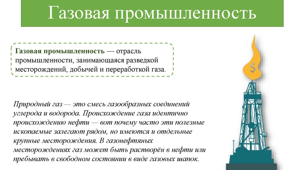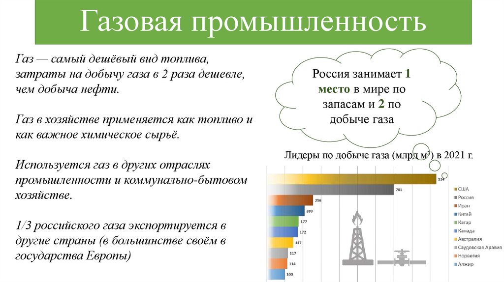 Газовая промышленностьГаз — самый дешёвый вид топлива,