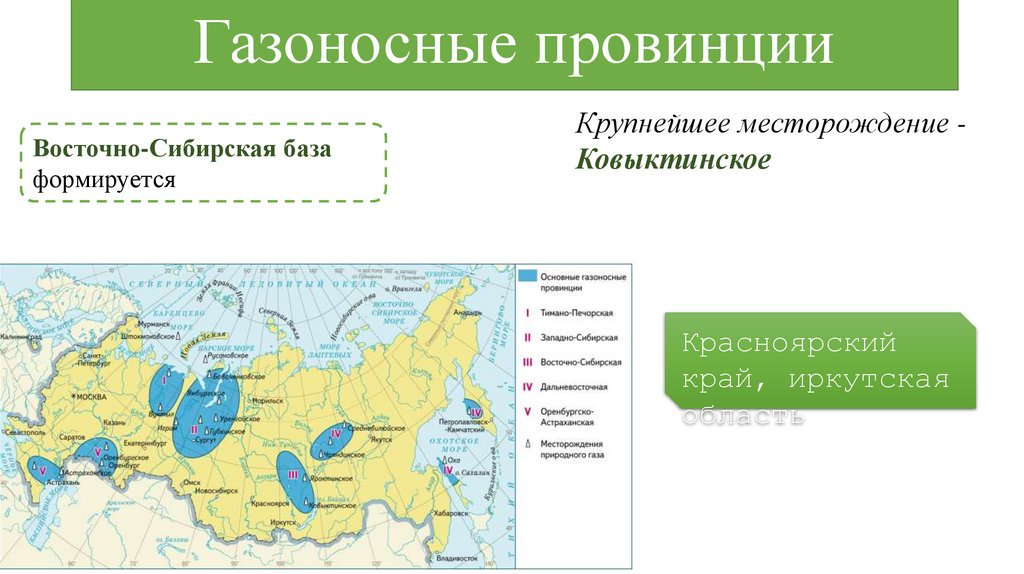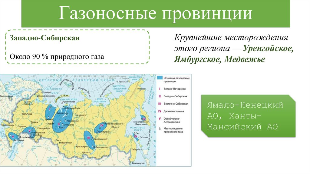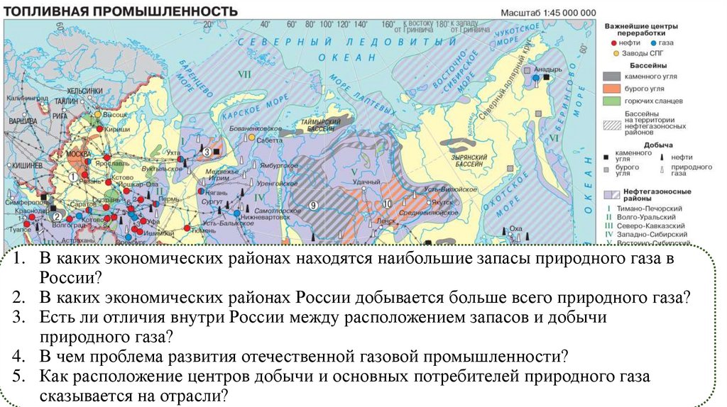 1. В каких экономических районах находятся наибольшие запасы природного газа вРоссии?