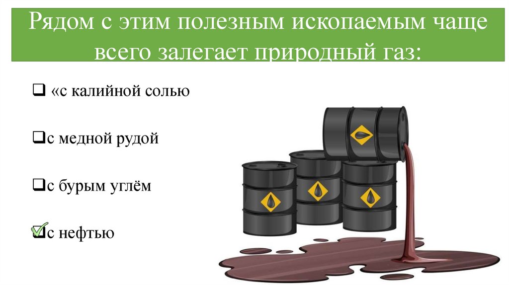Рядом с этим полезным ископаемым чащевсего залегает природный газ: