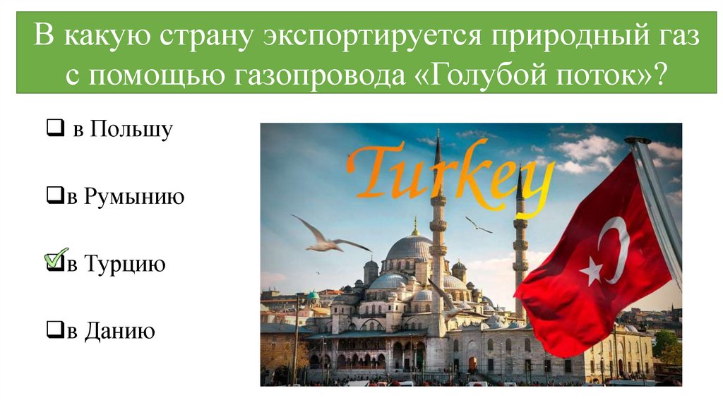 В какую страну экспортируется природный газс помощью газопровода «Голубой поток»?