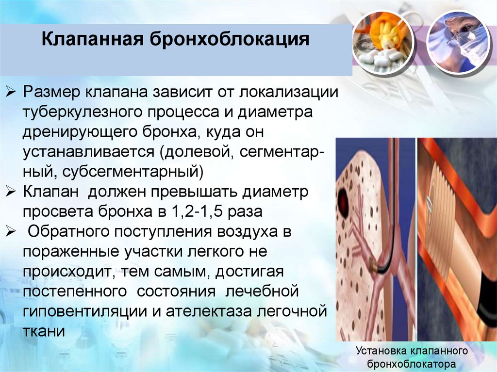 Клапанная бронхоблокацияРазмер клапана зависит от локализации