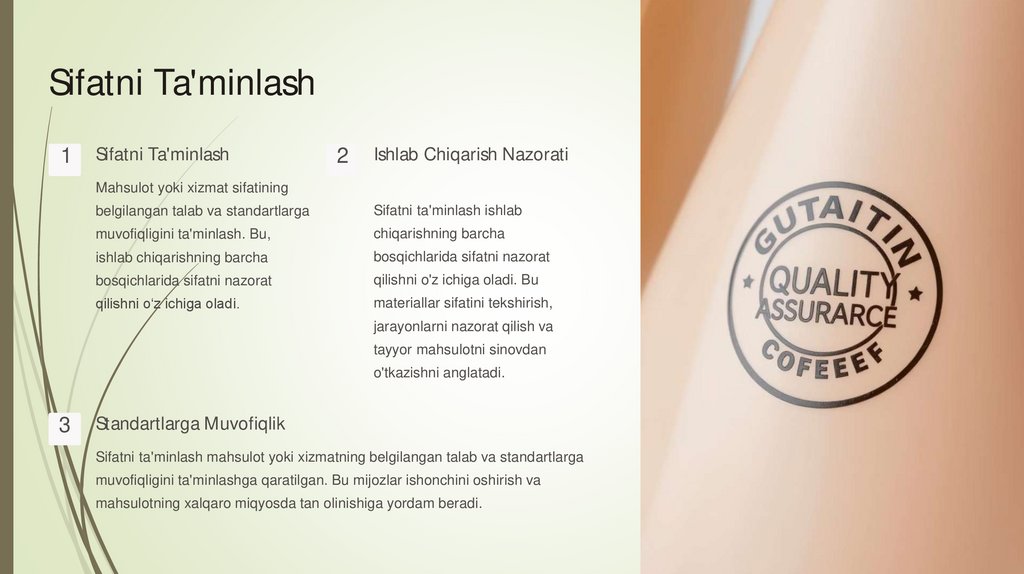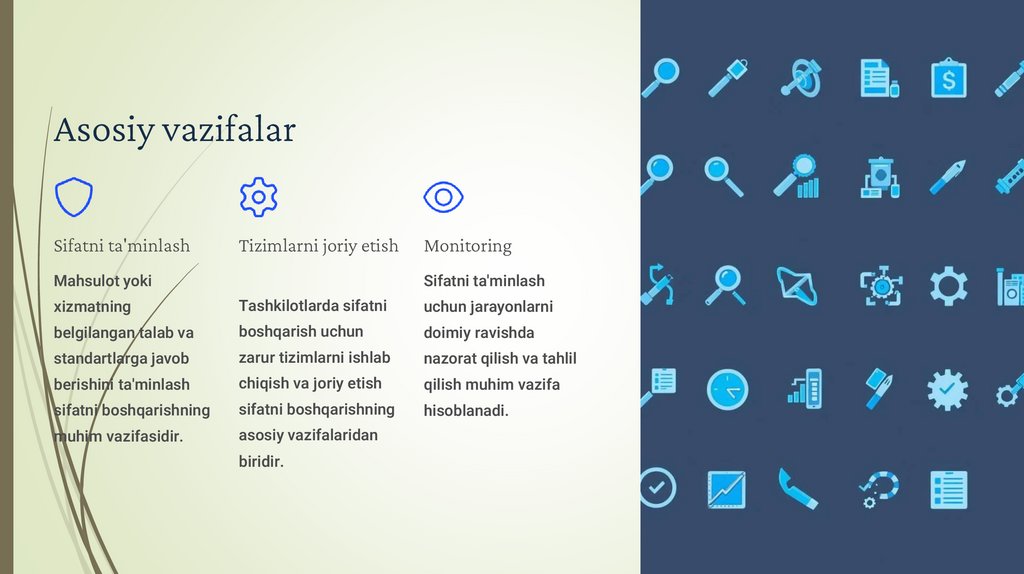 vazifalari haqida ma'lumot beriladi. Sifatni boshqarish tizimlari,