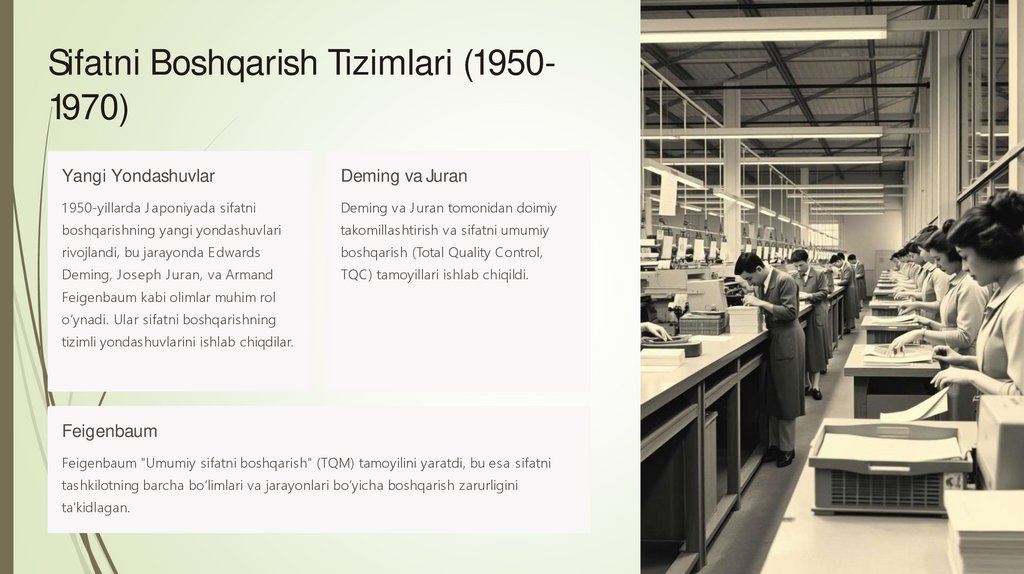 Sifatni Boshqarish Tizimlari (19501970)Yangi Yondashuvlar