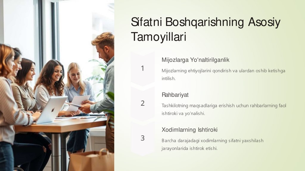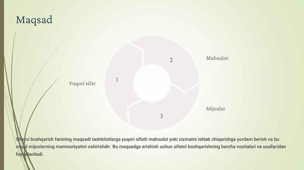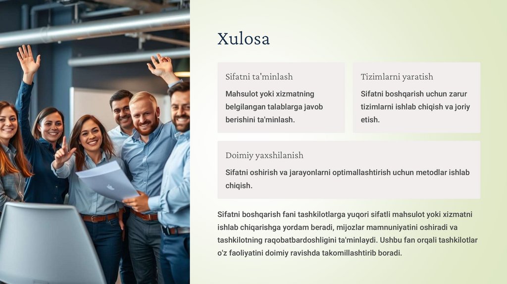 sifatli mahsulot yoki xizmatni ishlab chiqarishga yordam berishdir.