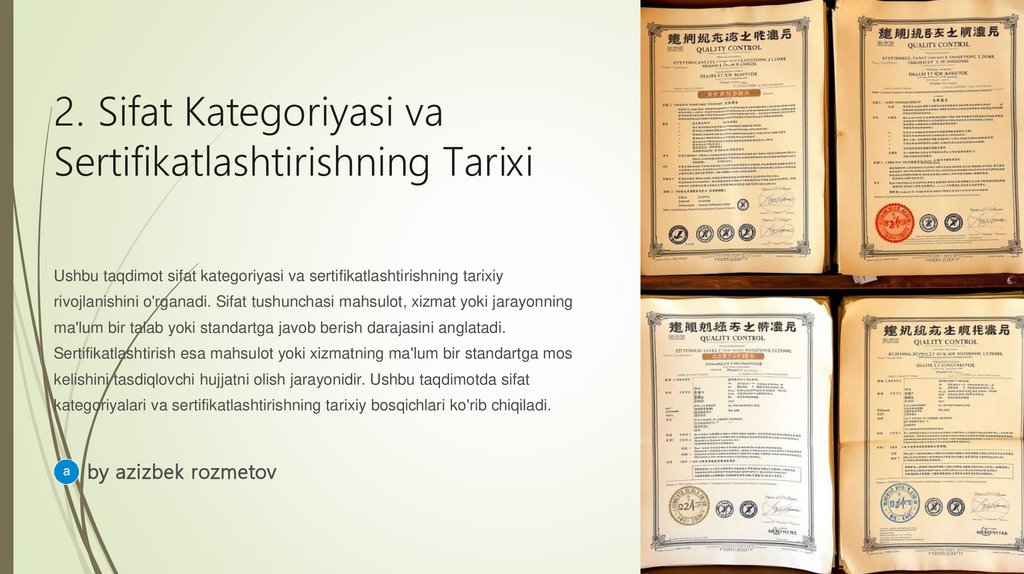 2. Sifat Kategoriyasi va Sertifikatlashtirishning Tarixi