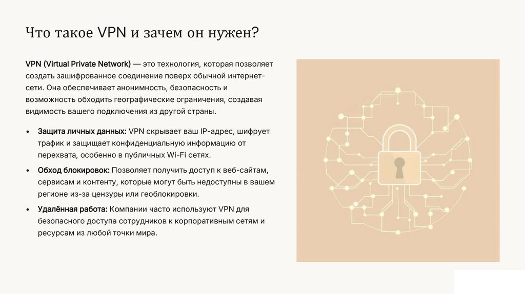 Что такое VPN и зачем он нужен?VPN (Virtual Private Network) — это технология, которая позволяет