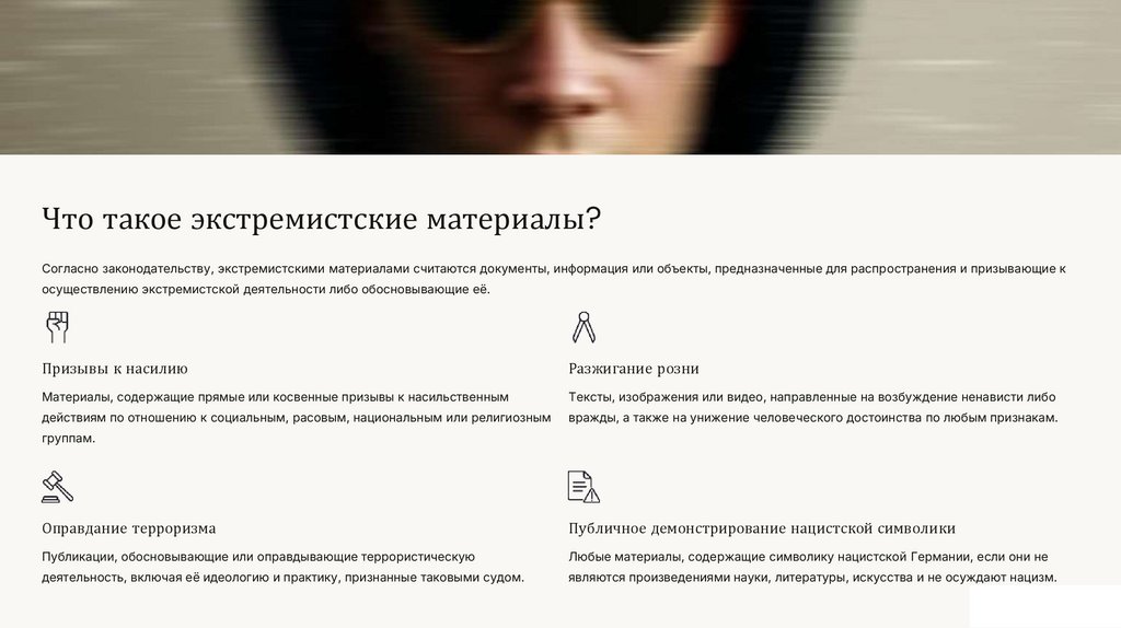 экстремистских, террористических или иных запрещенных материалов. Это прямое