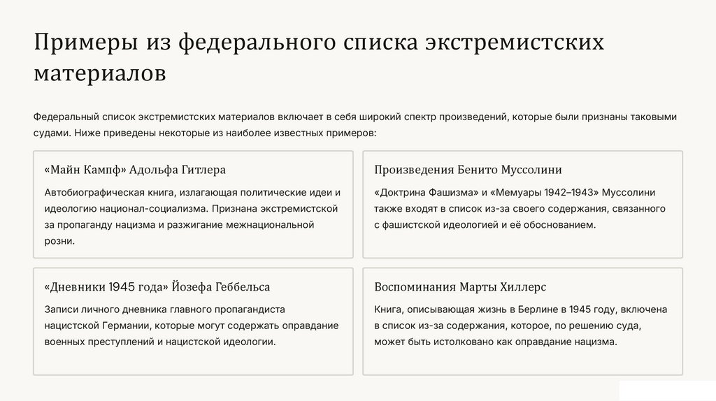 Федеральный список экстремистских материалов включает в себя широкий спектр произведений, которые были признаны таковыми