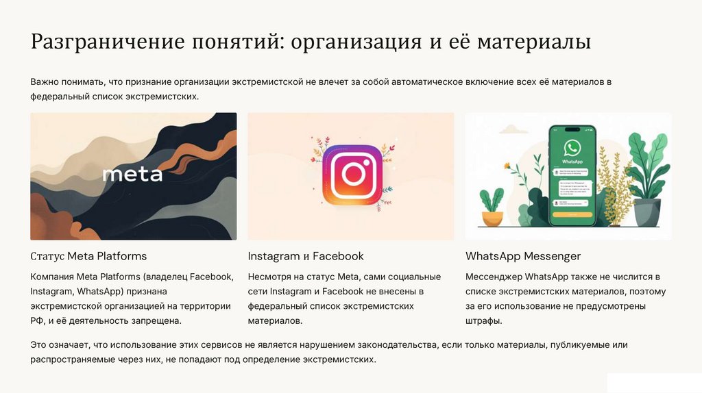 Разграничение понятий: организация и её материалыВажно понимать, что признание организации экстремистской не влечет за собой автоматическое включение всех её материалов в