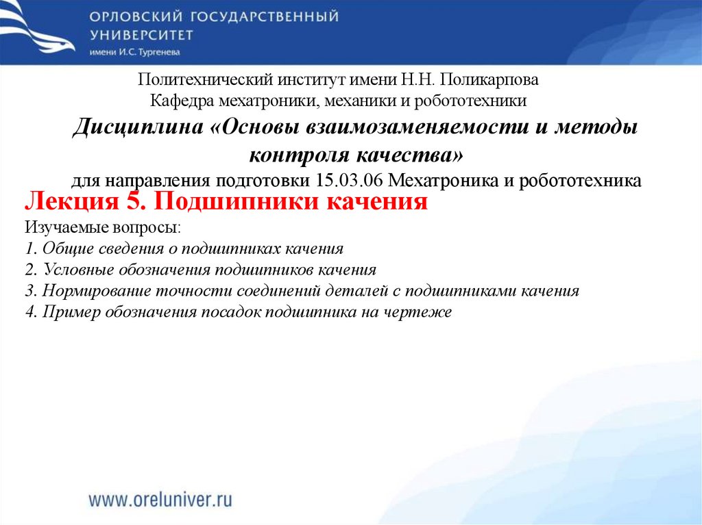 Политехнический институт имени Н.Н. ПоликарповаКафедра мехатроники, механики и робототехники
