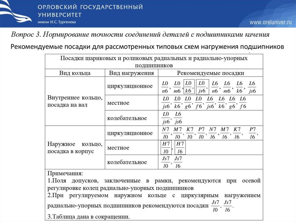 Вопрос 3. Нормирование точности соединений деталей с подшипниками каченияРекомендуемые посадки для рассмотренных типовых схем нагружения подшипников