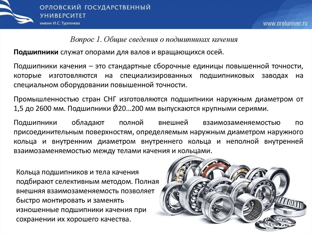 Подшипники качения – это стандартные сборочные единицы повышенной точности,