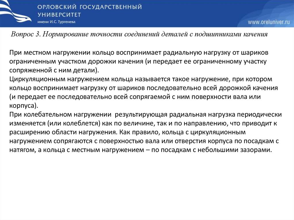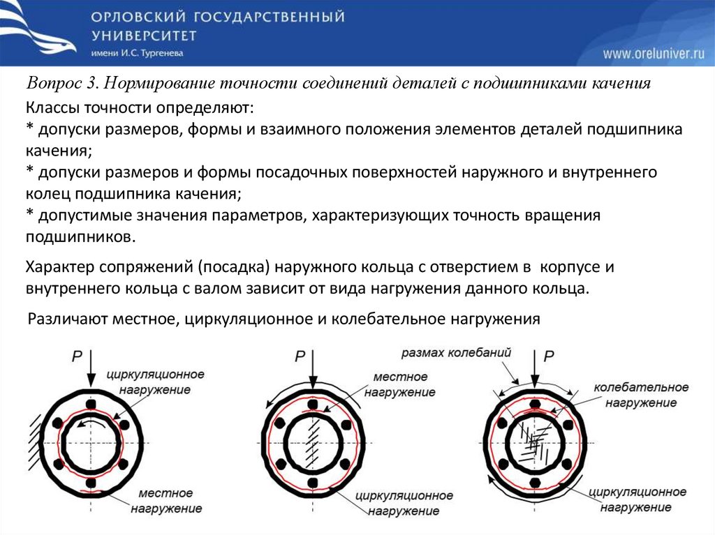 Вопрос 3. Нормирование точности соединений деталей с подшипниками каченияПри местном нагружении кольцо воспринимает радиальную нагрузку от шариков