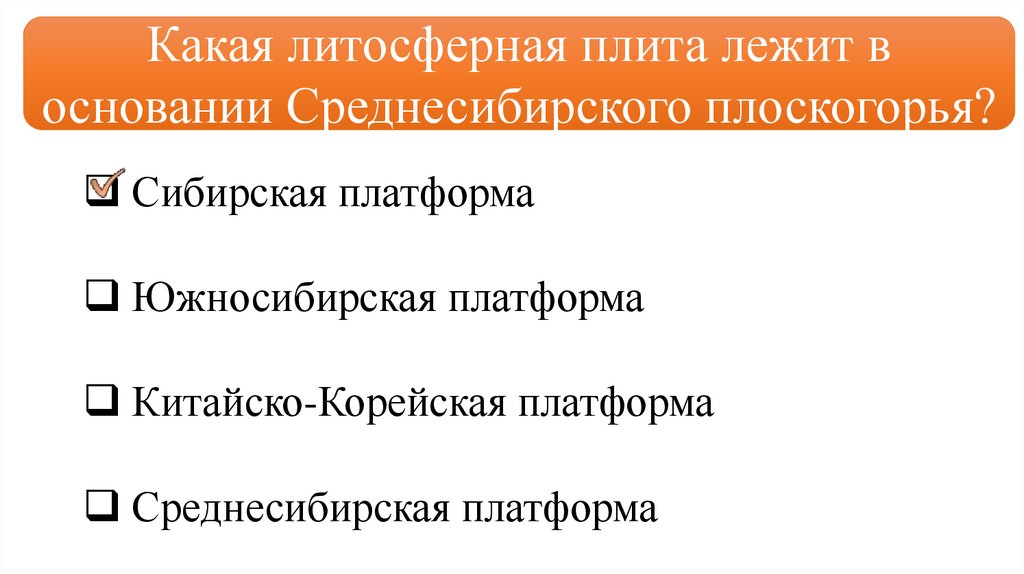 Какая литосферная плита лежит восновании Среднесибирского плоскогорья?