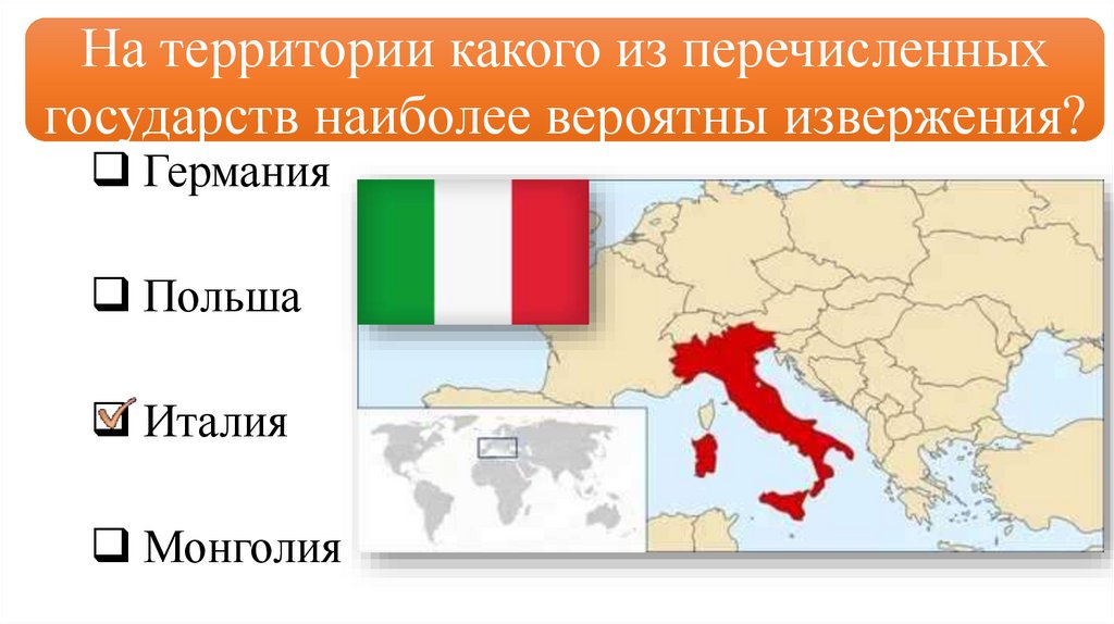 На территории какого из перечисленныхгосударств наиболее вероятны извержения?