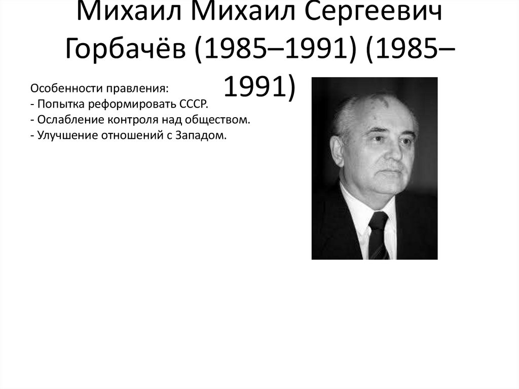 Михаил Михаил СергеевичГорбачёв (1985–1991) (1985–