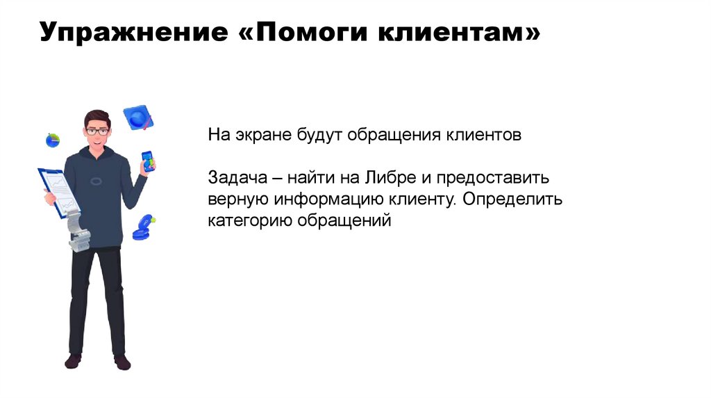 Упражнение «Помоги клиентам»На экране будут обращения клиентов