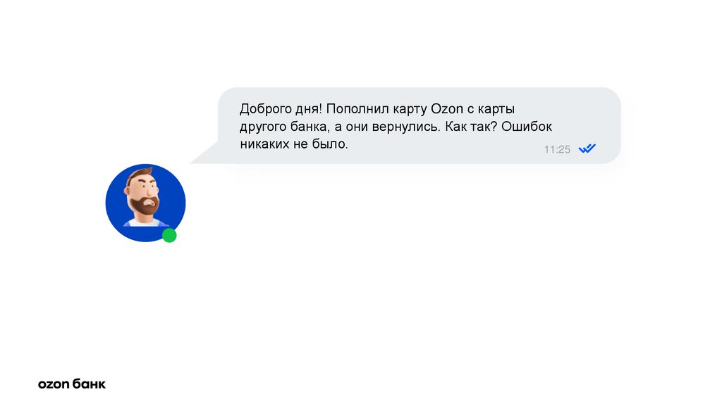 Доброго дня! Пополнил карту Ozon с картыдругого банка, а они вернулись. Как так? Ошибок
