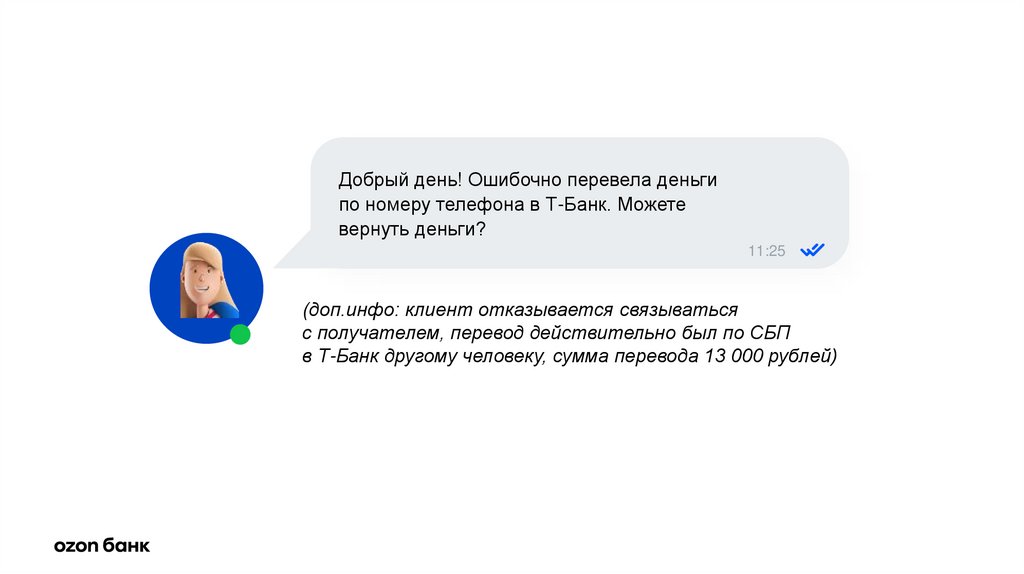 Добрый день! Ошибочно перевела деньгипо номеру телефона в Т-Банк. Можете