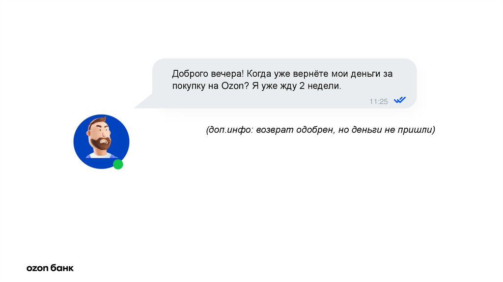 Доброго вечера! Когда уже вернёте мои деньги запокупку на Ozon? Я уже жду 2 недели.