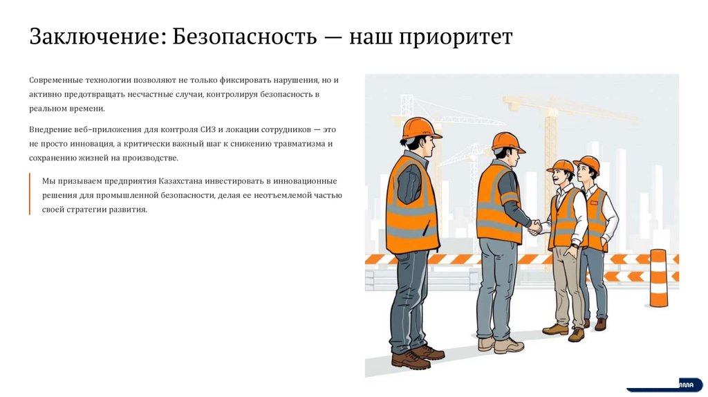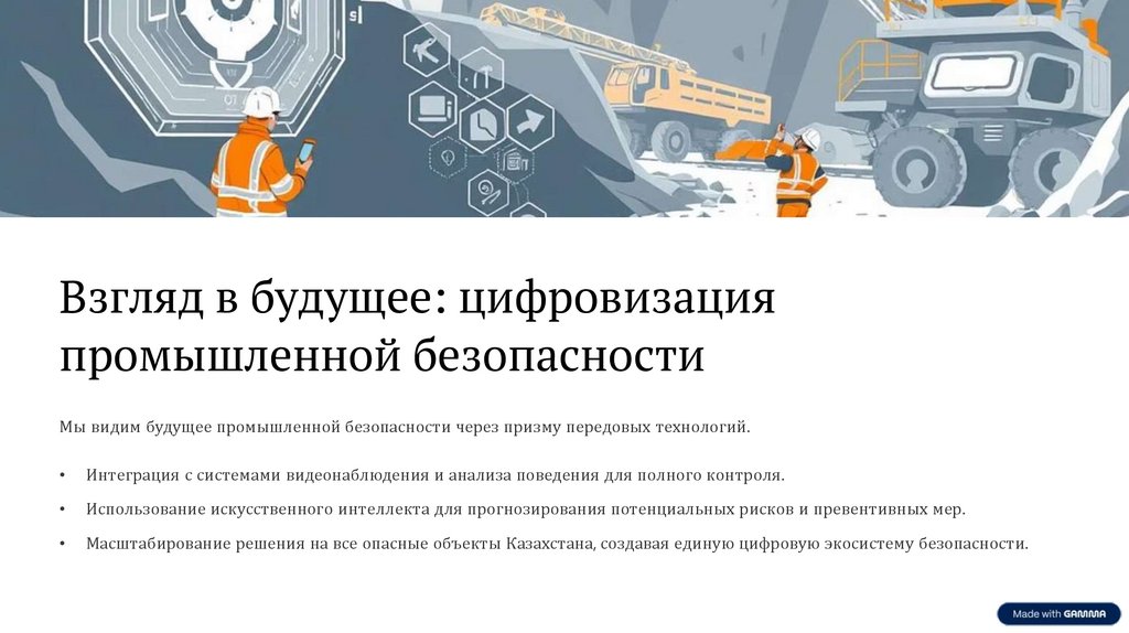Масштабирование решения на все опасные объекты Казахстана, создавая единую цифровую экосистему безопасности.