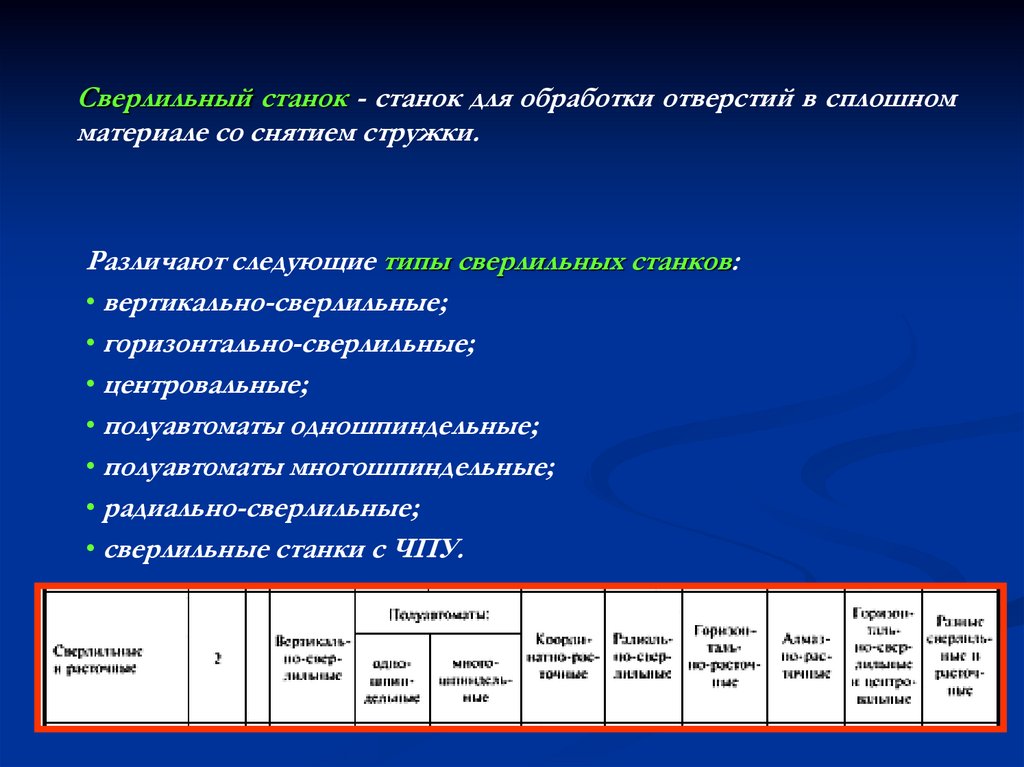 Сверлильный станок - станок для обработки отверстий в сплошномматериале со снятием стружки.