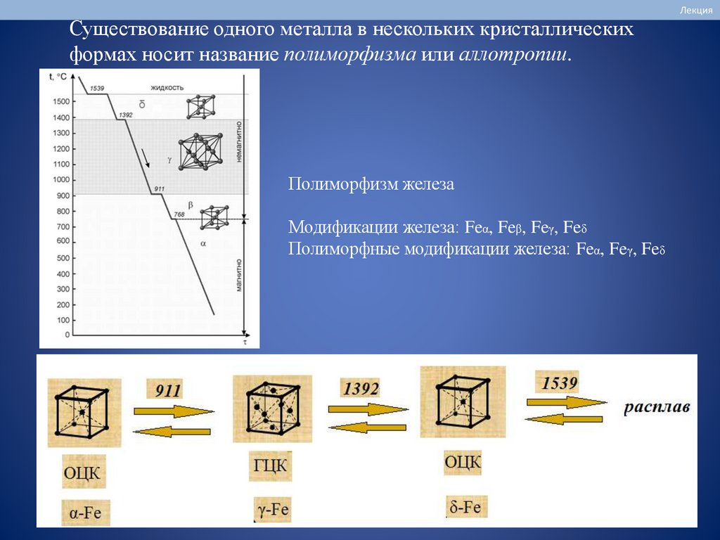 ЛекцияСуществование одного металла в нескольких кристаллических