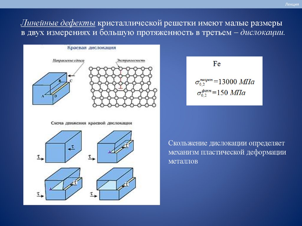 ЛекцияЛинейные дефекты кристаллической решетки имеют малые размеры