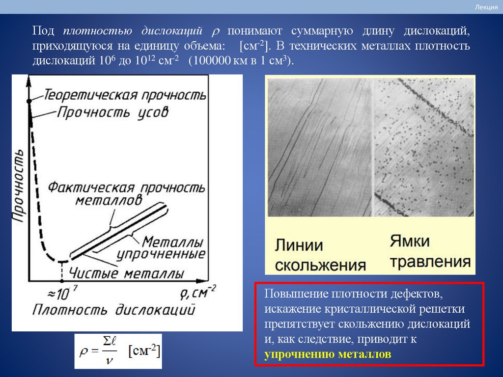 ЛекцияПод плотностью дислокаций понимают суммарную длину дислокаций,