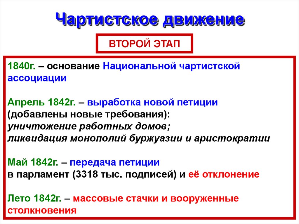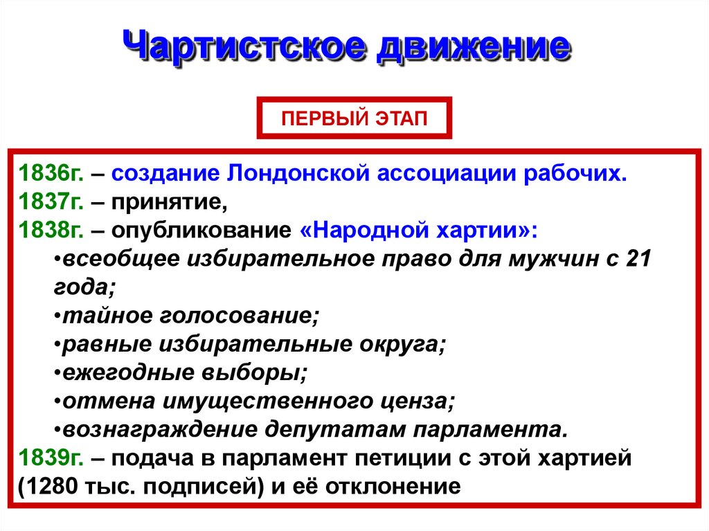 Чартистское движениеПЕРВЫЙ ЭТАП