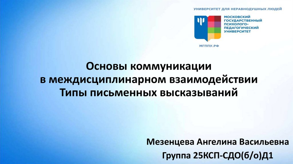 1. Основы коммуникации в междисциплинарном взаимодействии Типы письменных высказываний