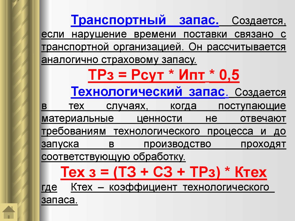 Транспортный запас. Создается,если нарушение времени поставки связано с