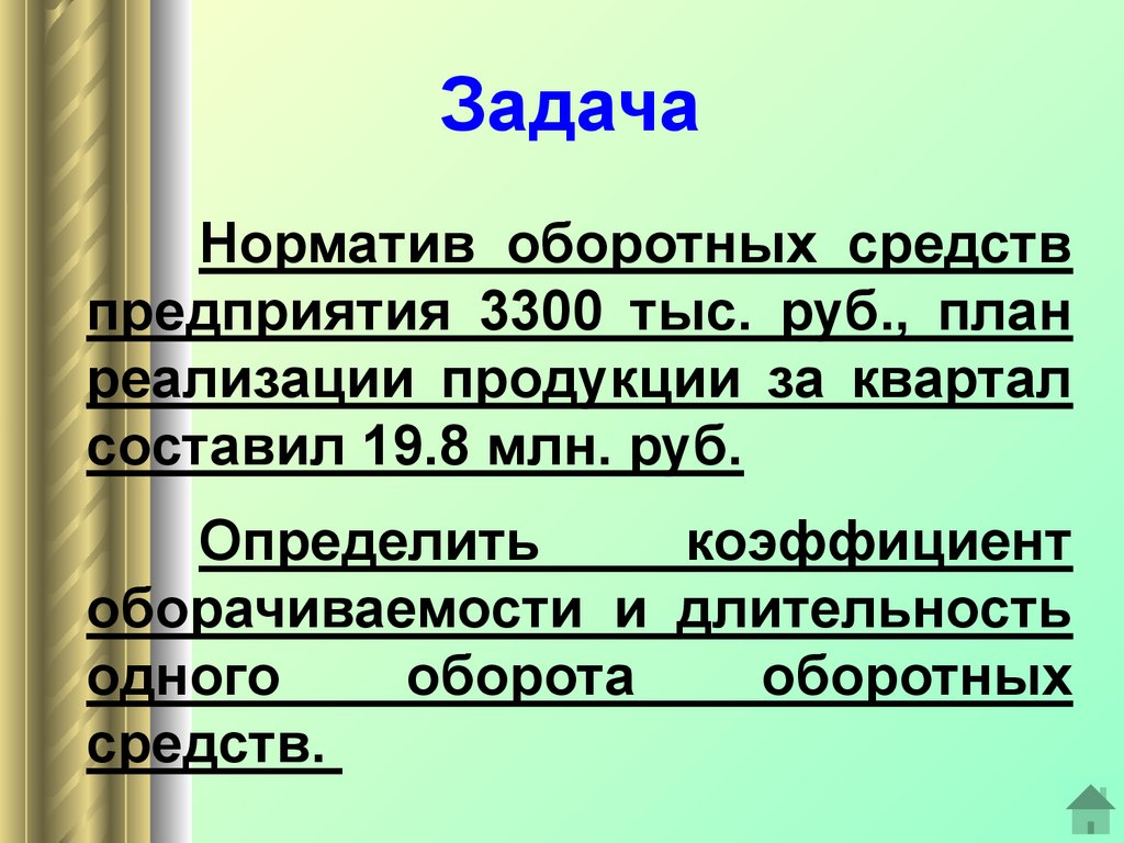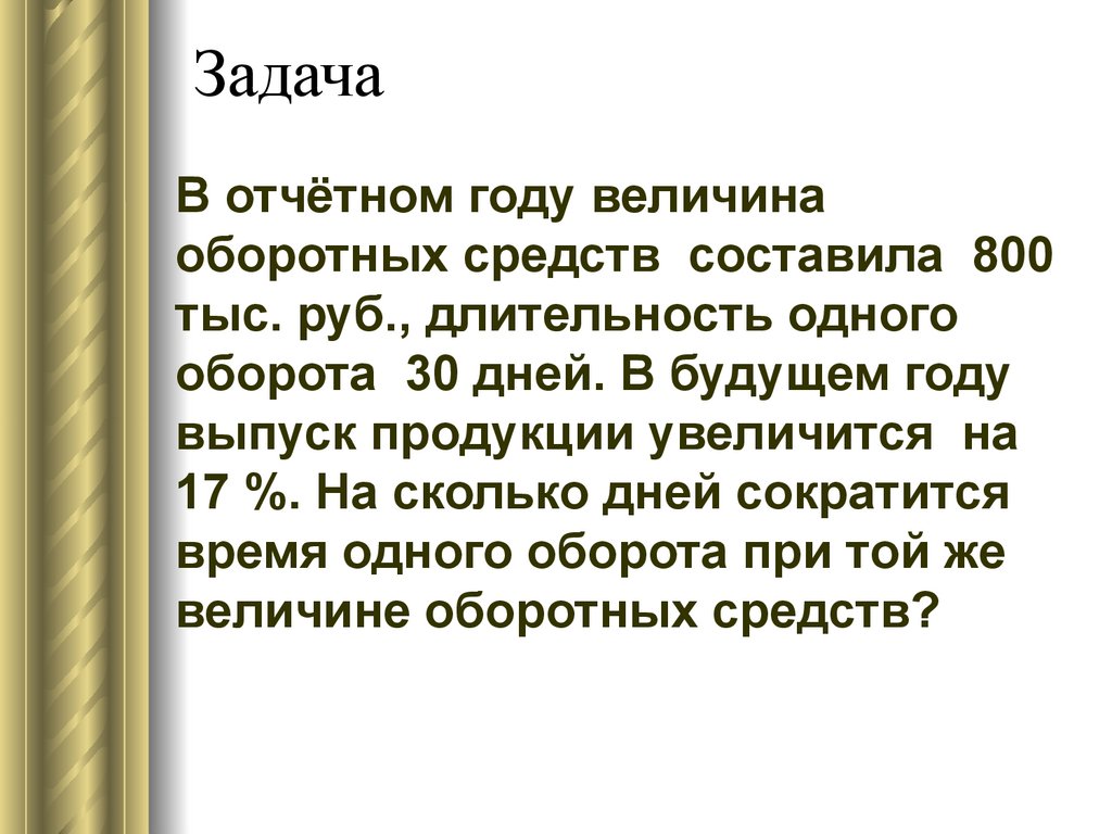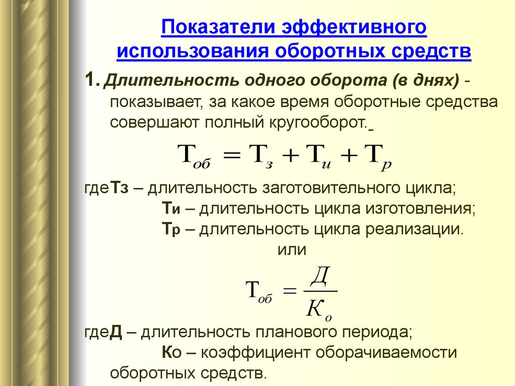 1. Длительность одного оборота (в днях) показывает, за какое время оборотные средства