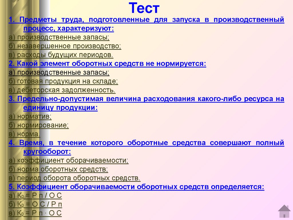 Тест1. Предметы труда, подготовленные для запуска в производственный