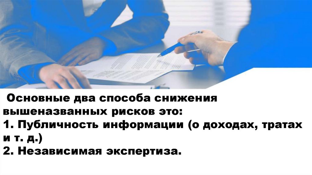 Основные два способа снижениявышеназванных рисков это: