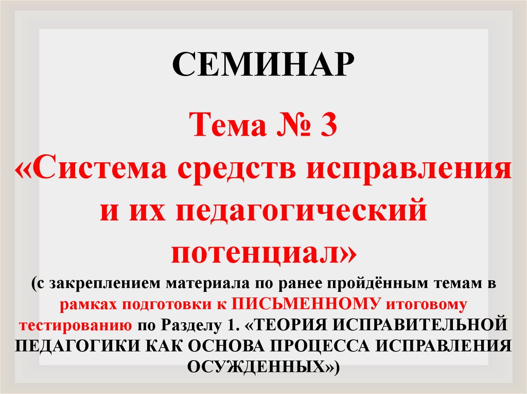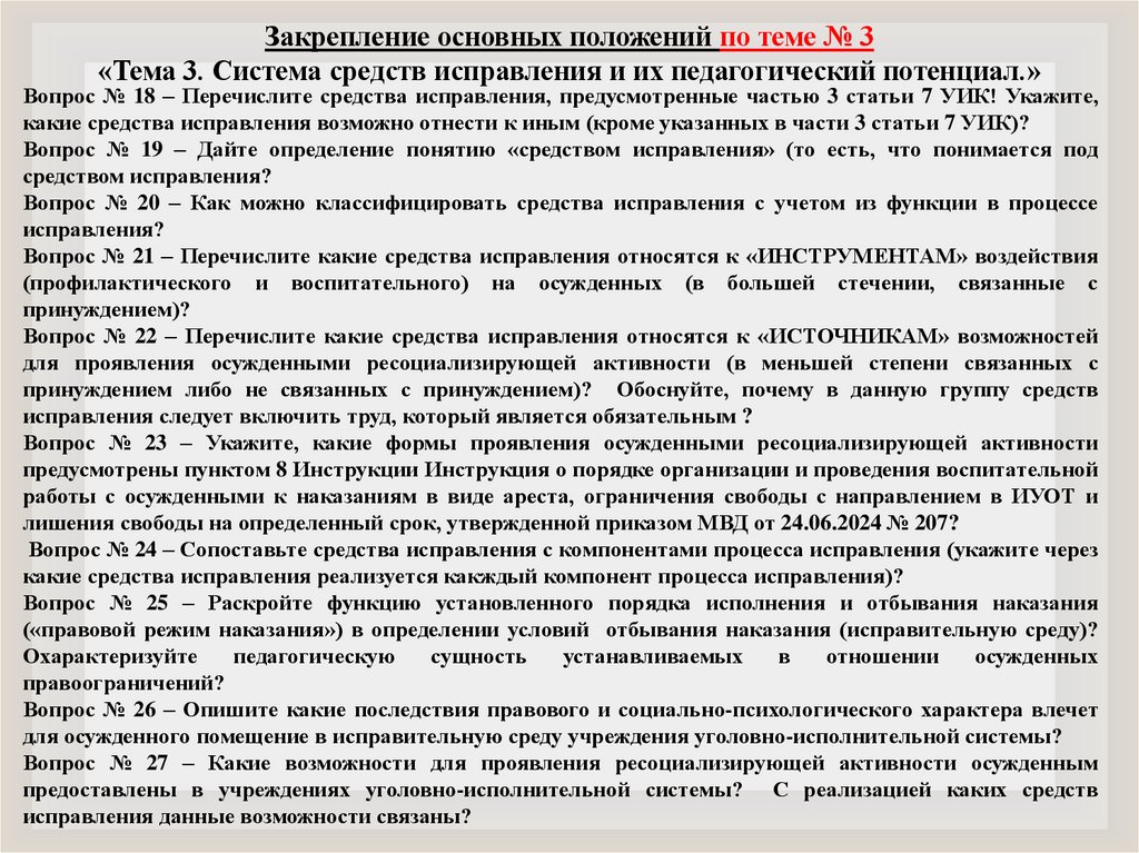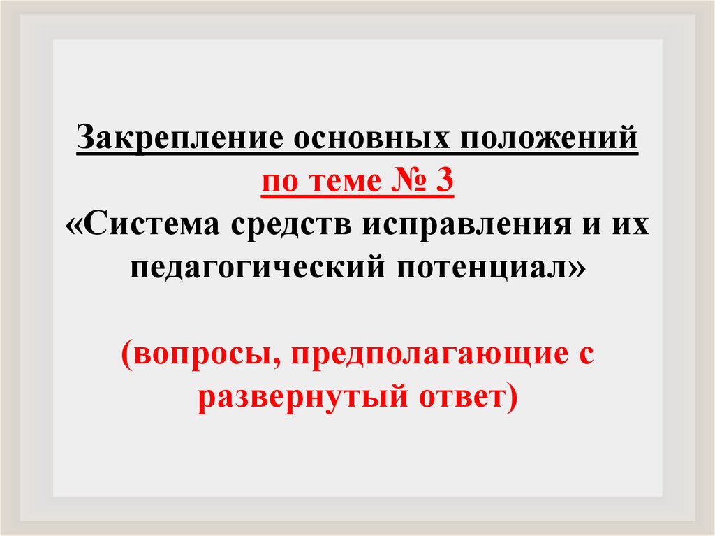 Закрепление основных положений по теме № 3«Тема 3. Система средств исправления и их педагогический потенциал.»