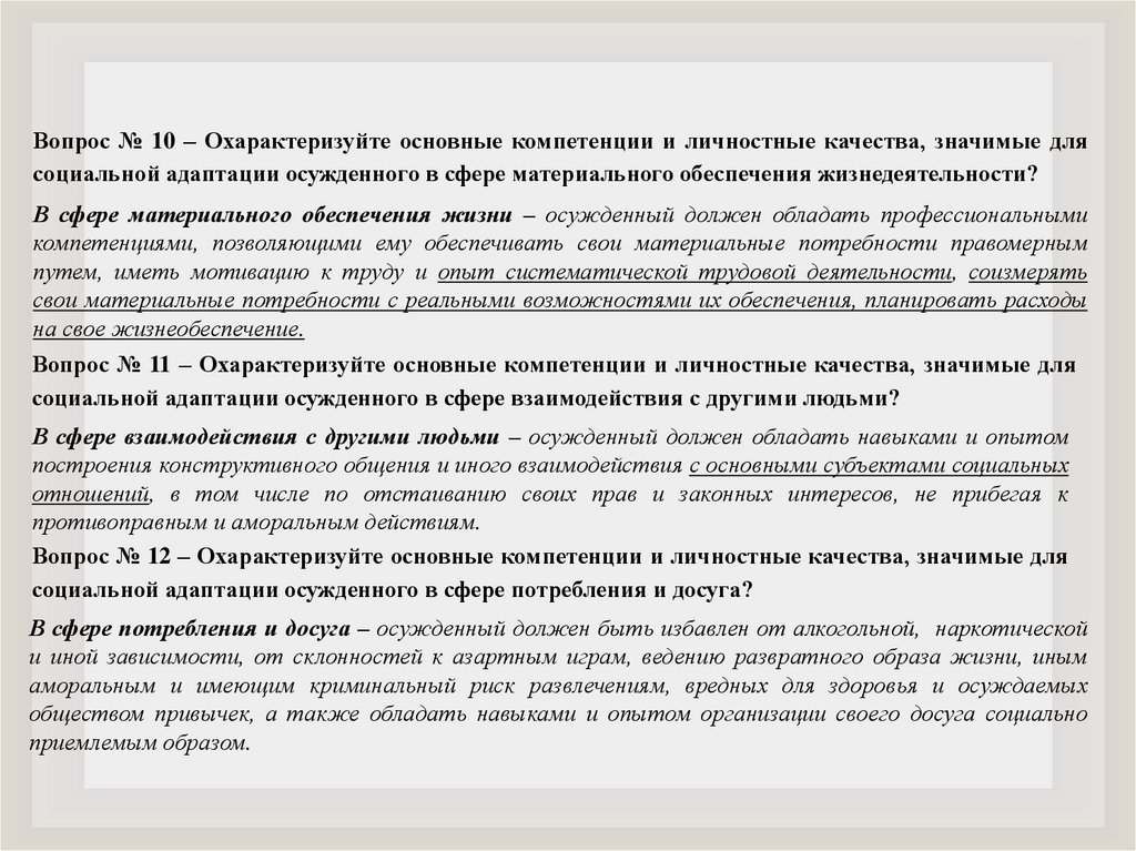 Вопрос № 9 – Перечислите в каких основных сферах жизнедеятельности осужденных после